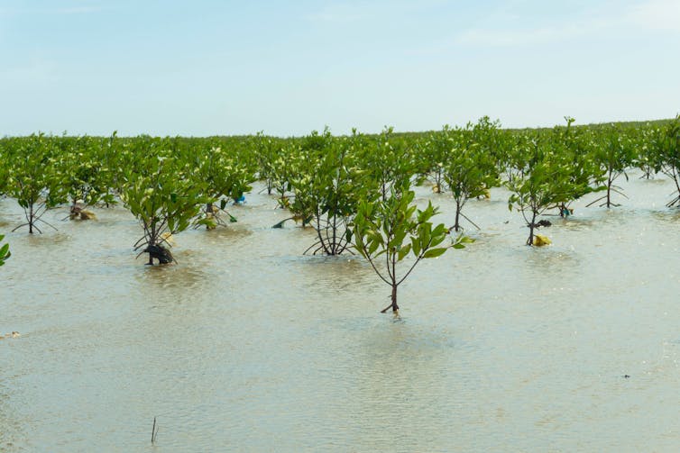 Replanting mangroves could protect tropical coastlines from flooding and storm surges, while absorbing atmospheric carbon and slowing climate change at the same time.