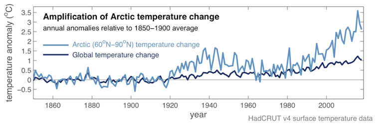 Nowhere are the effects of climate change more visible than in the Arctic – a region that’s estimated to be warming at least twice as fast as the global average. Arctic sea ice reached its second-lowest extent on record in September 2019 – a mere 1.6m square miles.
